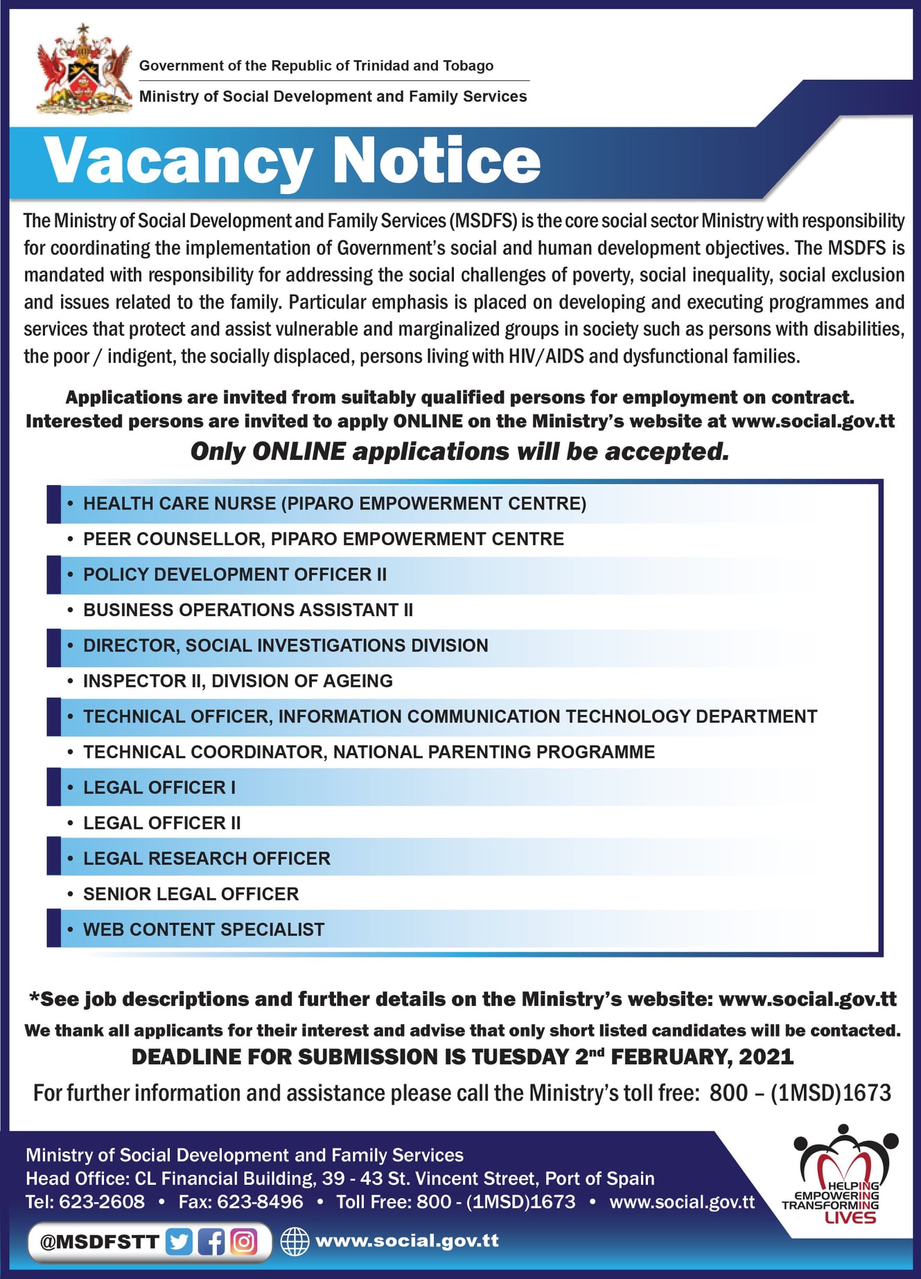 Tagged: ADMINISTRATIVE, Career Opportunity, employment, employment opportunity, Full Time, Government jobs, Government vacancies, Government Vacancies February 2021, ict, information technology, INSPECTOR II, job opportunity, jobs, jobs in trinidad and tobago, Legal Officer I, Legal Officer II, Legal Research Officer, MANAGER, PEER COUNSELLOR, PEER COUNSELLOR PIPARO EMPOWERMENT CENTRE, PIPARO EMPOWERMENT CENTRE, Senior Legal Officer, TECHNICAL, tobago, Trinidad, Trinidad and Tobago, Vacancies, vacancy, WEB CONTENT SPECIALIST, work, work from home