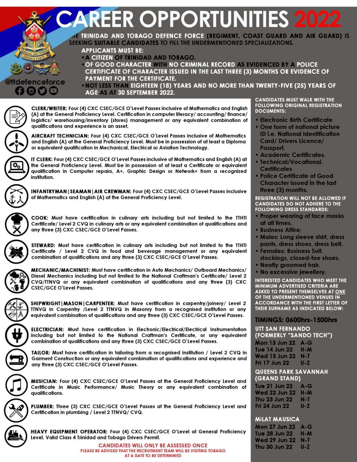 Career Opportunities with the Trinidad and Tobago Defence Force.
